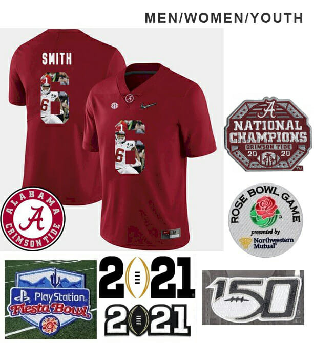 Celebrate your football fandom with this Football jersey ! This Alabama Crimson Tide #6 DeVonta Smith College Football Red Jersey is in various size men, women and youth and features a combination of stitched-embroidery. You’ll look just like your favorite football players when you rock this football jersey!