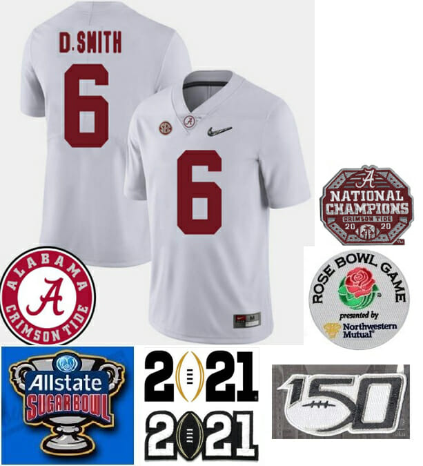 Celebrate your football fandom with this Football jersey ! This Alabama Crimson Tide #6 DeVonta Smith Football Jersey White is in various size men, women and youth and features a combination of stitched-embroidery. You’ll look just like your favorite football players when you rock this football jersey!