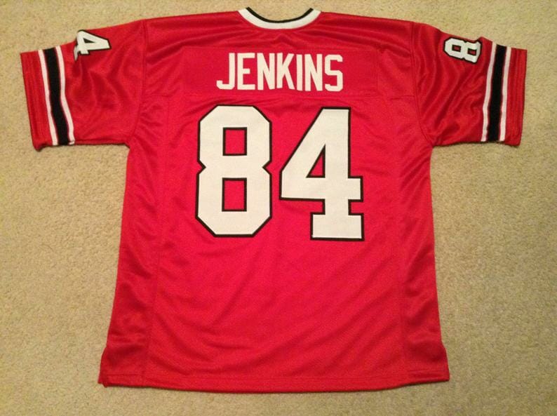 Celebrate your football fandom with this Football jersey ! This Alfred Jenkins UNSIGNED CUSTOM Sewn Stitched Red Jersey is in various size men and features a combination of stitched-embroidery. You’ll look just like your favorite football players when you rock this football jersey!
