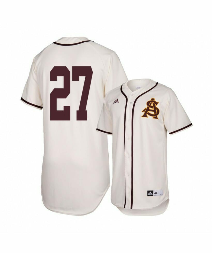 Make sure you are ready to celebrate another baseball team victory on game day! This Arizona State Sun Devils 27 Hunter Jump White Baseball Jersey is available in various size and gender men, women, and youth baseball jersey size and is a perfect way to let you join in on the fun. It boasts quality team colors and graphics so you can feel just like a true baseball team and show off your fandom!