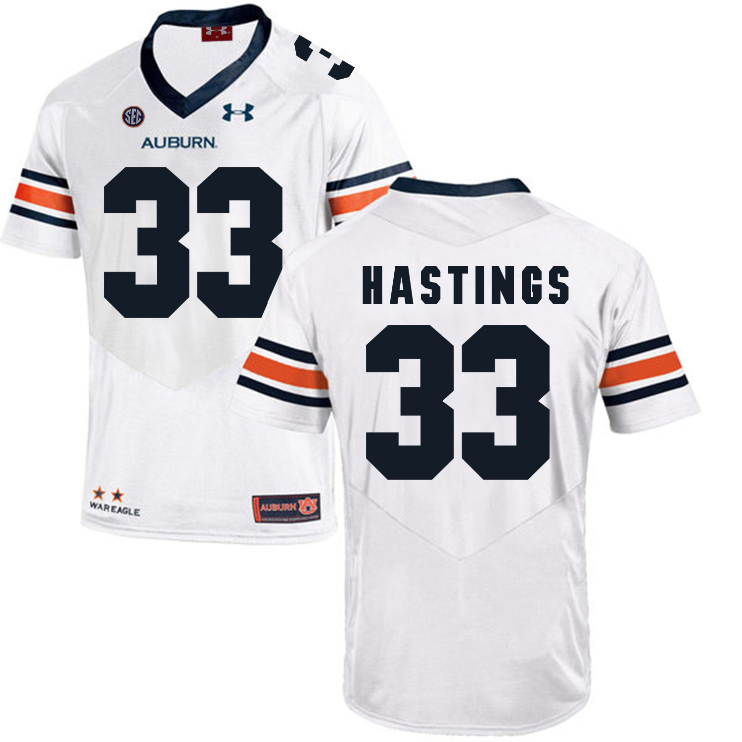 Celebrate your football fandom with this ncaa football jersey ! This Auburn Tigers Under Armour #33 Will Hastings Football Jersey White is available in various size men, women and youth and features a combination of stitched-embroidery. You’ll look just like your favorite ncaa football players when you rock this ncaa football jersey!