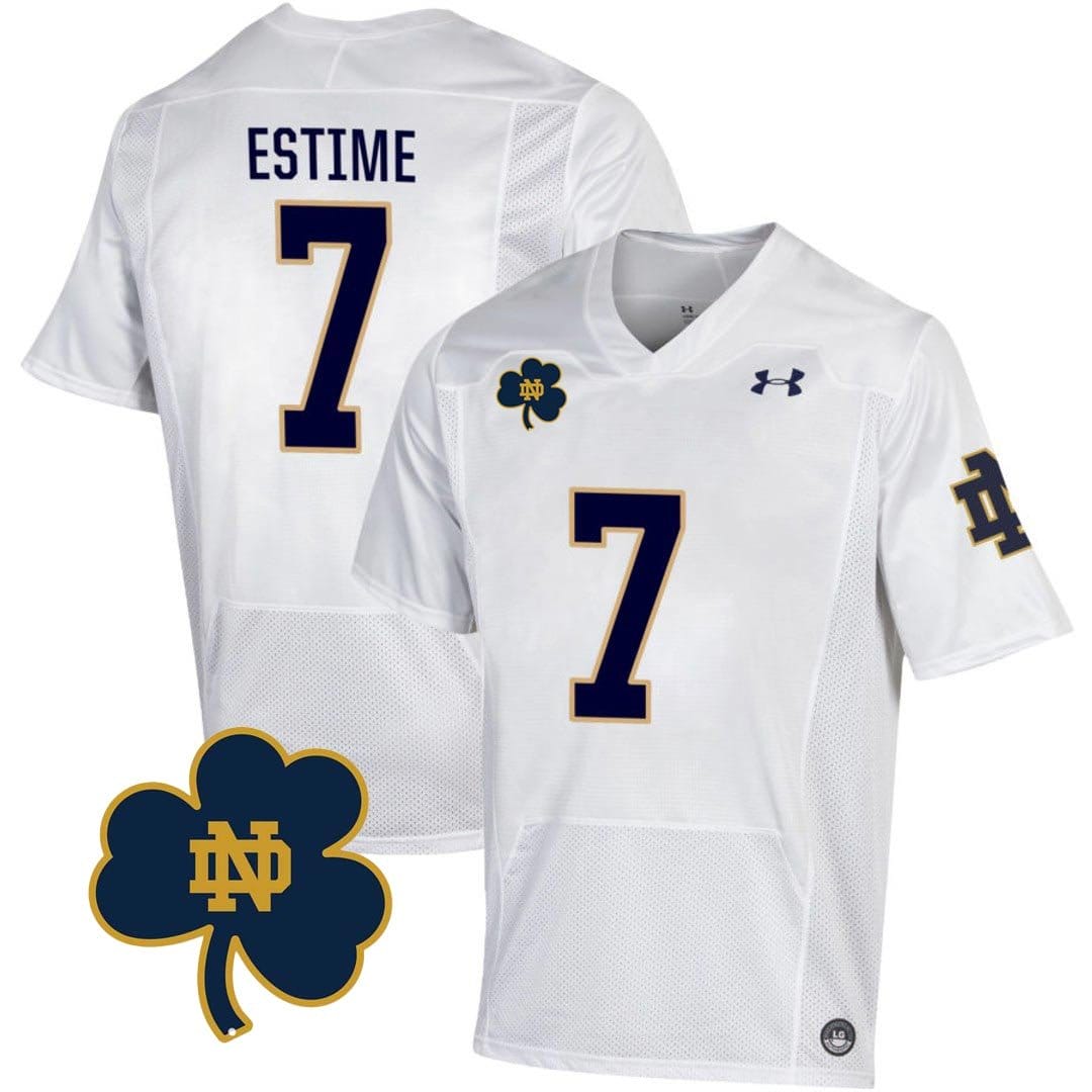 To guarantee the highest quality, the Audric Estime jersey is imported. This ensures that every detail meets international standards, providing fans with a piece of apparel that stands out for its craftsmanship and authenticity. Embrace the global appeal of Notre Dame football by showcasing your support with this top-tier jersey.