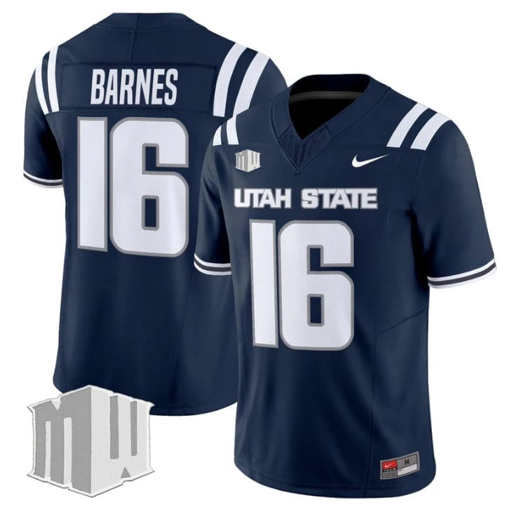 Bryson Barnes Jersey #16 Utah State Aggies 2025 Vapor Limited Stitched Navy