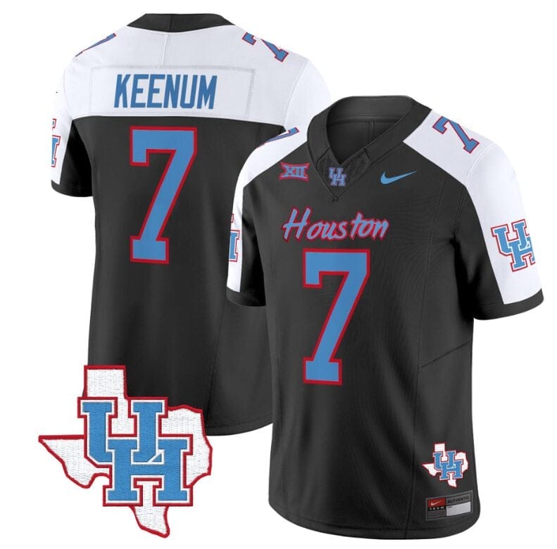 Originating from the University of Houston, this jersey design echoes moments of glory when Case Keenum led his team with unparalleled skill. The vibrant colors and bold patterns reflect the spirit of Texas football.