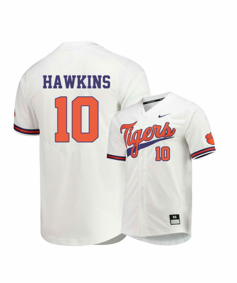 Make sure you are ready to celebrate another baseball team victory on game day! This Clemson Tigers 10 Bryar Hawkins White Elite College Baseball Jersey is available in various size and gender men, women, and youth baseball jersey size and is a perfect way to let you join in on the fun. It boasts quality team colors and graphics so you can feel just like a true baseball team and show off your fandom!