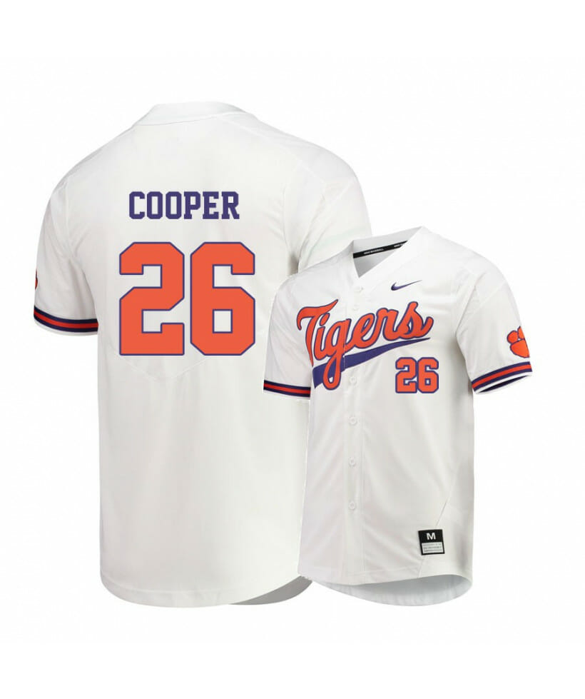 Make sure you are ready to celebrate another baseball team victory on game day! This Clemson Tigers 26 Matt Cooper White Elite College Baseball Jersey is available in various size and gender men, women, and youth baseball jersey size and is a perfect way to let you join in on the fun. It boasts quality team colors and graphics so you can feel just like a true baseball team and show off your fandom!