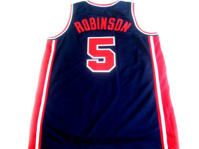 Celebrate your Basketball fandom with this Basketball jersey ! This David Robinson #5 Team USA Basketball Jersey Navy Blue is in various size men, women and youth and features a combination of stitched-embroidery. You’ll look just like your favorite basketball players when you rock this basketball jersey!