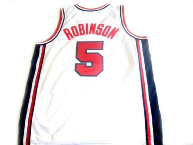 Celebrate your Basketball fandom with this Basketball jersey ! This David Robinson #5 Team USA BasketBall Jersey White is in various size men, women and youth and features a combination of stitched-embroidery. You’ll look just like your favorite basketball players when you rock this basketball jersey!