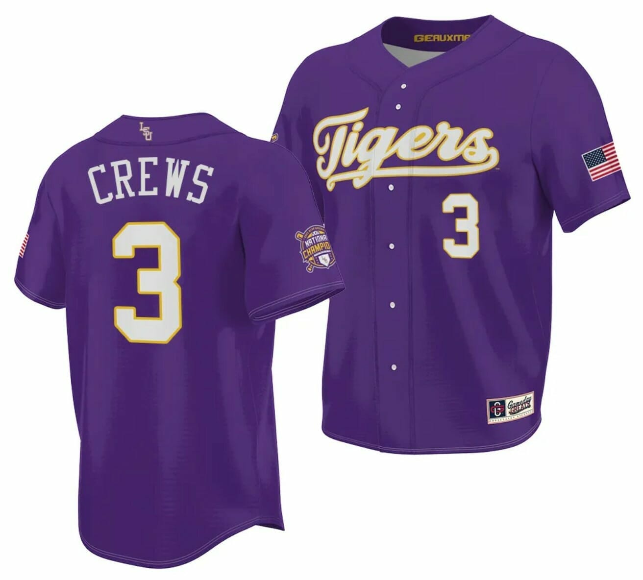 The Dylan Crews Jersey LSU Tigers NCAA Baseball 2023 College World Series Champions Purple #3 is a limited-edition jersey that commemorates LSU Tigers’ victory in the 2023 College World Series. This jersey is a collector’s item and a true testament to the team’s success. By wearing this jersey, you not only show your support for Dylan Crews and the LSU Tigers but also celebrate their triumph on the grandest stage of college baseball.