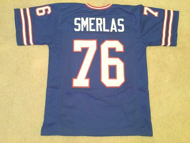 Celebrate your football fandom with this Football jersey ! This Fred Smerlas UNSIGNED CUSTOM Sewn Stitched Blue Jersey is in various size men and features a combination of stitched-embroidery. You’ll look just like your favorite football players when you rock this football jersey!