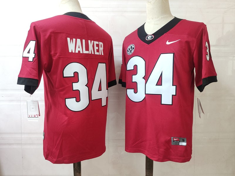Celebrate your football fandom with this ncaa football jersey ! This Georgia Bulldogs #34 Herchel Walker NCAA Football Jersey Red is available in various size men, women and youth and features a combination of stitched-embroidery. You’ll look just like your favorite ncaa football players when you rock this ncaa football jersey!