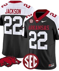 The traditional Arkansas Razorbacks jersey features bold team colors with Jackson’s name and number prominently displayed. This is perfect for those who want to represent their team heritage while showcasing their favorite player.
