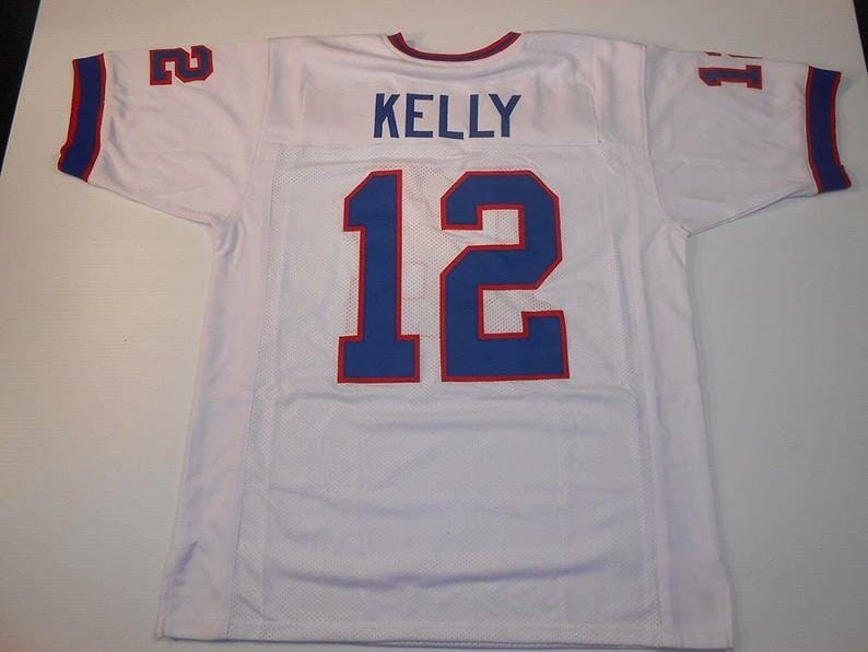 Celebrate your football fandom with this Football jersey ! This Jim Kelly UNSIGNED CUSTOM Made White Jersey is in various size men and features a combination of stitched-embroidery. You’ll look just like your favorite football players when you rock this football jersey!