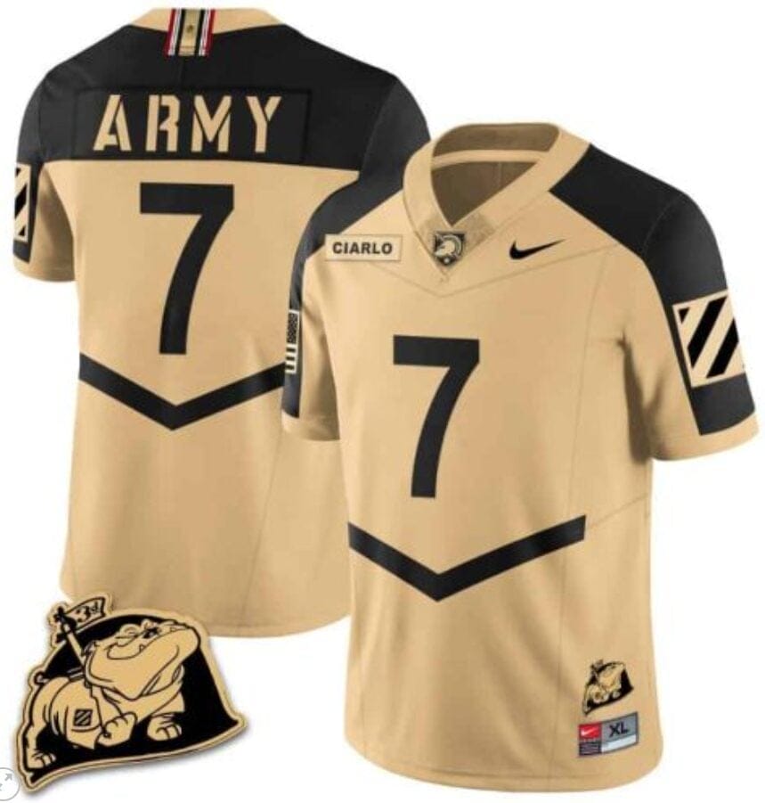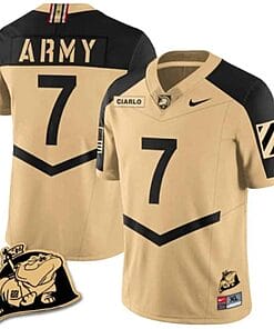 Game day is more than just a date on the calendar; it’s an experience that unites fans in their love for college football. At the heart of this passion is Jimmy Ciarlo, a player who has captured the hearts of many with his athletic prowess and leadership on the field. If you’re gearing up to support your favorite team, there’s no better way to show your allegiance than by sporting a Jimmy Ciarlo Jersey #7 Army Black Knights Jersey Rocky The Bulldog Patch Vapor Limited College Football Stitched Gold Alternate.