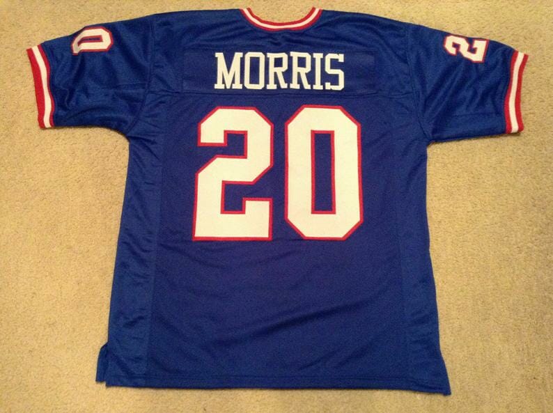 Celebrate your football fandom with this Football jersey ! This Joe Morris UNSIGNED CUSTOM Made Blue Jersey is in various size men and features a combination of stitched-embroidery. You’ll look just like your favorite football players when you rock this football jersey!