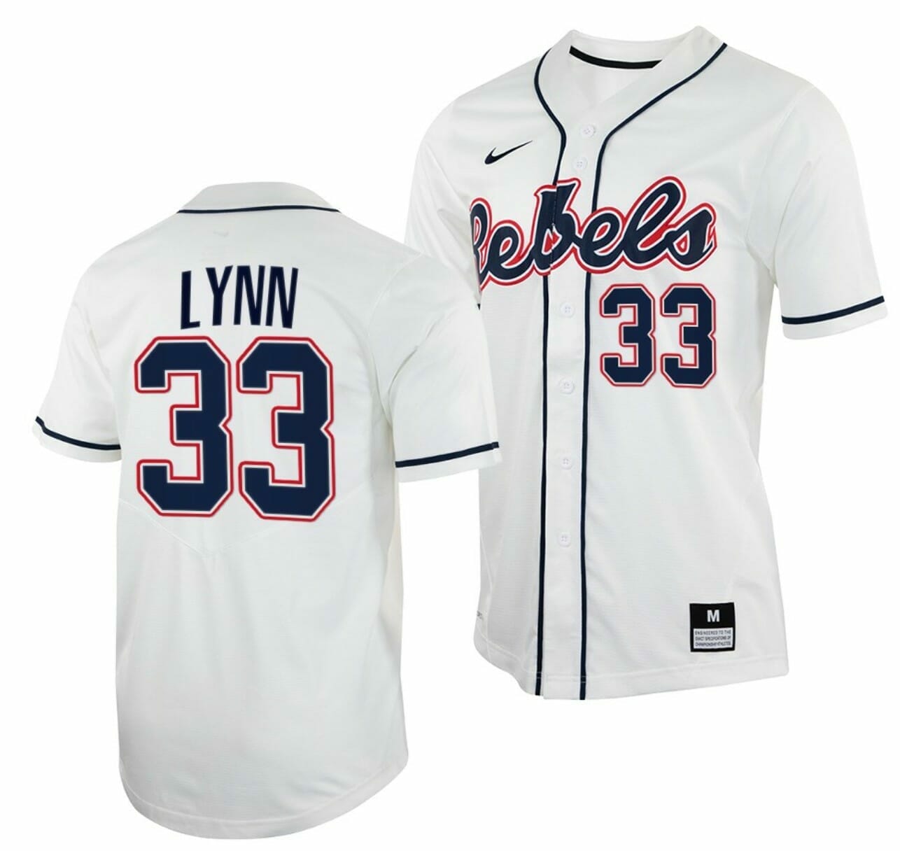 The Lance Lynn Jersey Ole Miss Rebels College Baseball White #33 is a classic design that showcases the Ole Miss Rebels team colors. The jersey is primarily white, with navy blue stripes on the sleeves and collar. The front of the jersey features the iconic Ole Miss logo, while the back displays Lynn’s number 33. This design is a great way to show your Rebel pride while paying homage to one of the team’s greatest players.