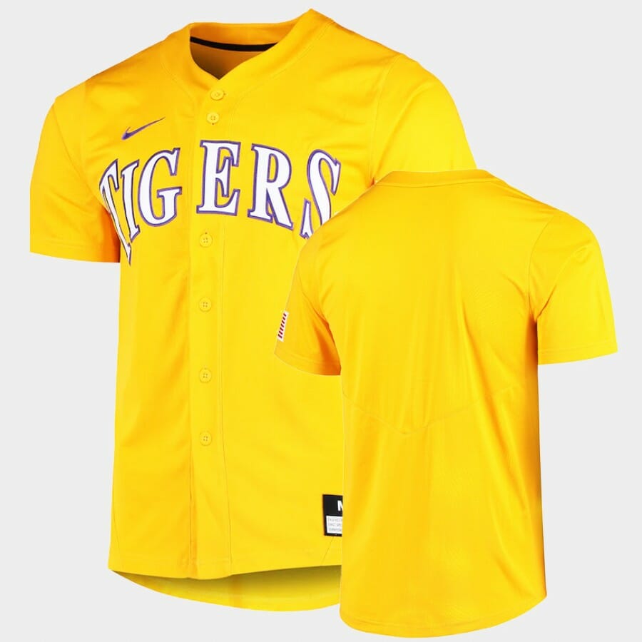Make sure you are ready to celebrate another baseball team victory on game day! This LSU Tigers Custom Name Number Gold College Baseball Elite Jersey is available in various size and gender men, women, and youth baseball jersey size and is a perfect way to let you join in on the fun. It boasts quality team colors and graphics so you can feel just like a true baseball team and show off your fandom!