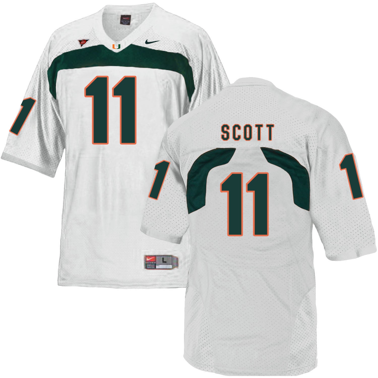 Celebrate your football fandom with this ncaa football jersey ! This Miami Hurricanes #11 Scott NCAA College Football Jersey White is available in various size men, women and youth and features a combination of stitched-embroidery. You’ll look just like your favorite ncaa football players when you rock this ncaa football jersey!