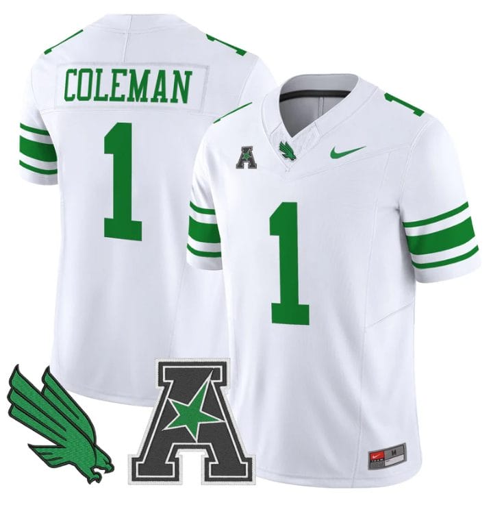 Miles Coleman Jersey #1 North Texas Mean Green 2025 Vapor Stitched White