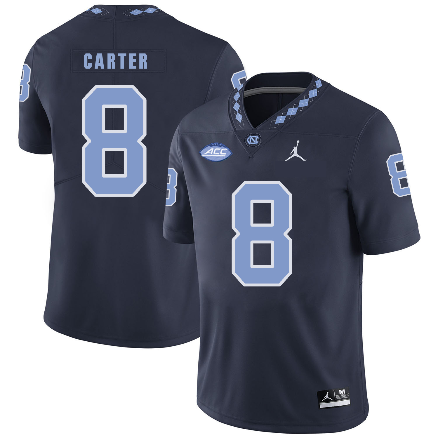 Celebrate your football fandom with this ncaa football jersey ! This North Carolina Tar Heels #8 Michael Carter NCAA Football Jersey Black is available in various size men, women and youth and features a combination of stitched-embroidery. You’ll look just like your favorite ncaa football players when you rock this ncaa football jersey!