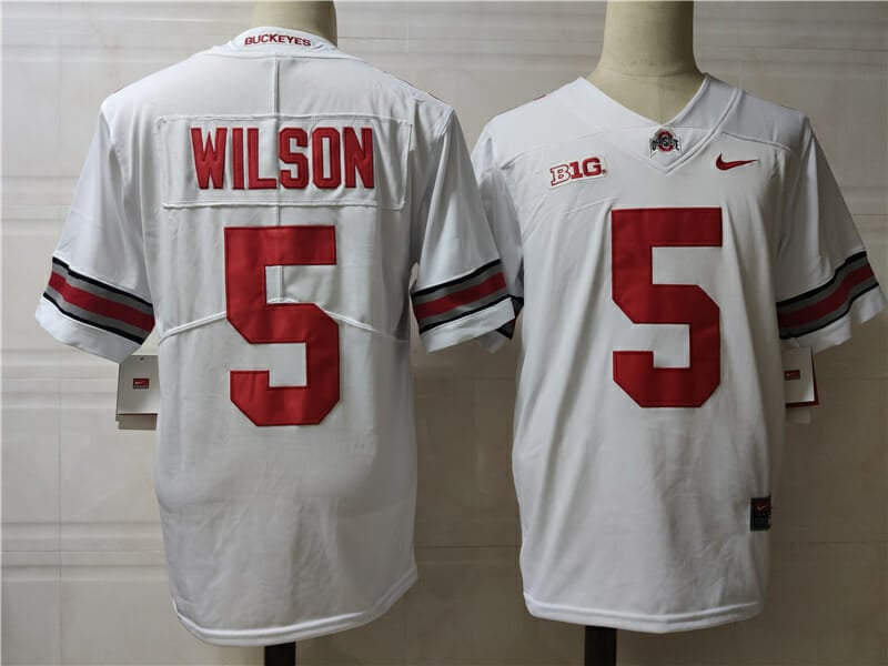 Celebrate your football fandom with this Football jersey ! This Ohio State Buckeyes #5 Wilson College Football Jersey White is in various size men, women and youth and features a combination of stitched-embroidery. You’ll look just like your favorite football players when you rock this football jersey!