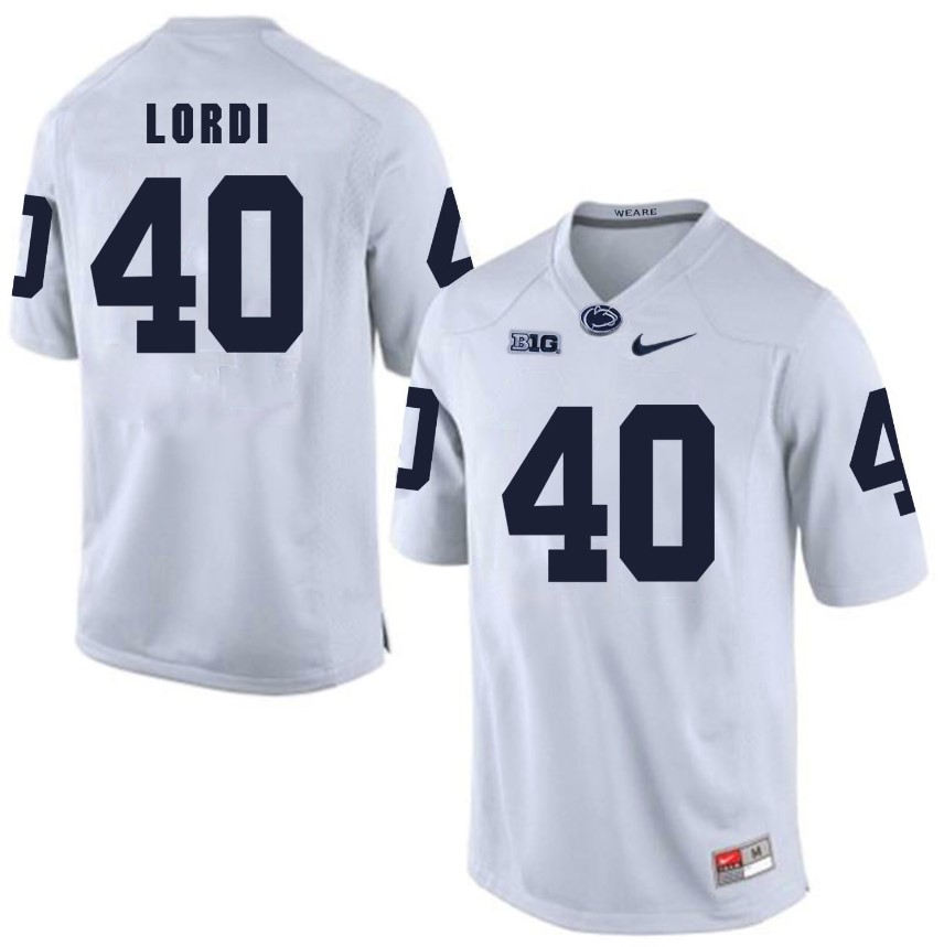 Celebrate your football fandom with this ncaa football jersey ! This Penn State Nittany Lions James Lordi Jersey #40 Football NCAA Jerseys White is available in various size men, women and youth and features a combination of stitched-embroidery. You’ll look just like your favorite ncaa football players when you rock this ncaa football jersey!