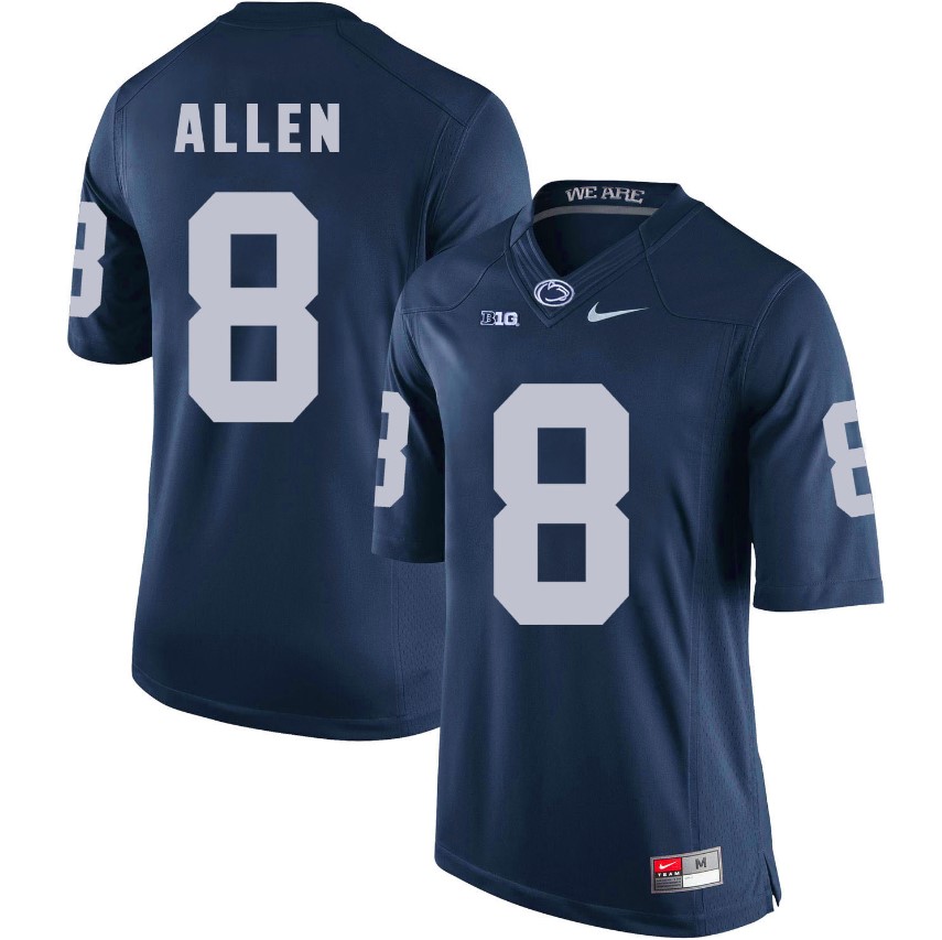 Celebrate your football fandom with this ncaa football jersey ! This Penn State Nittany Lions Mark Allen Jersey #8 Football NCAA Jerseys Blue is available in various size men, women and youth and features a combination of stitched-embroidery. You’ll look just like your favorite ncaa football players when you rock this ncaa football jersey!