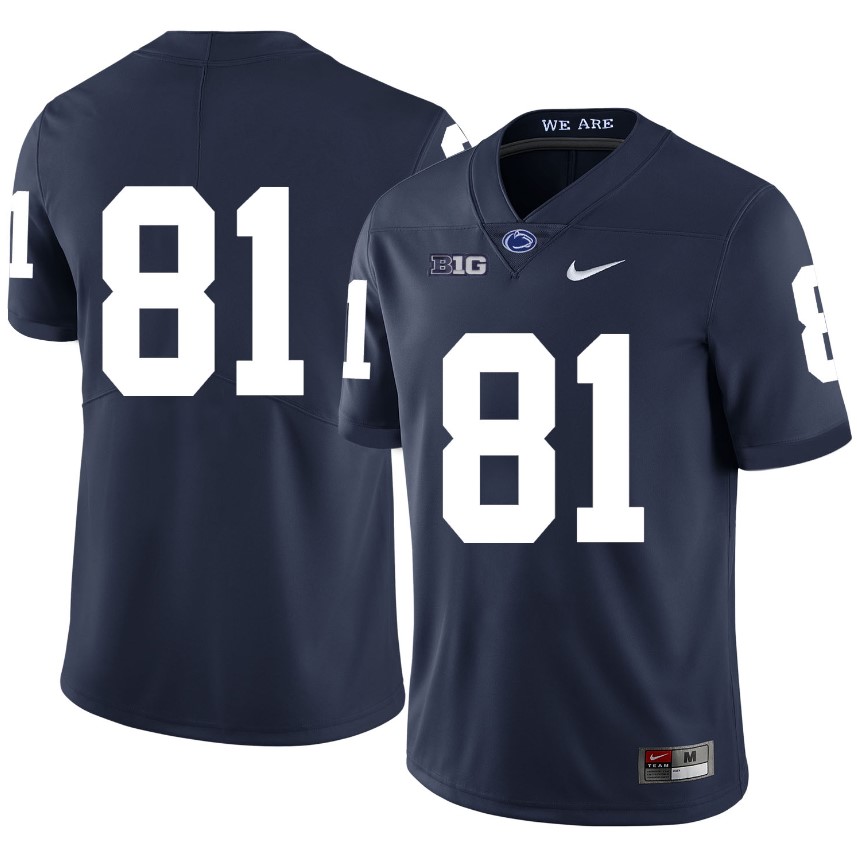 Celebrate your football fandom with this ncaa football jersey ! This Penn State Nittany Lions NO NAME Jersey #81 Football NCAA Jerseys Dark Blue is available in various size men, women and youth and features a combination of stitched-embroidery. You’ll look just like your favorite ncaa football players when you rock this ncaa football jersey!