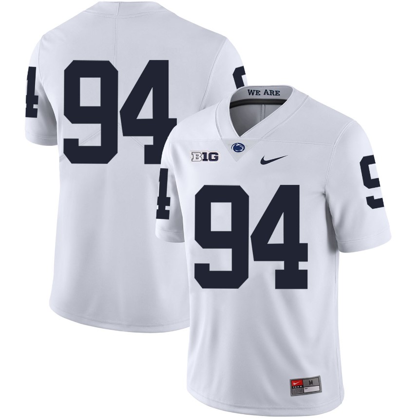 Celebrate your football fandom with this ncaa football jersey ! This Penn State Nittany Lions NO NAME Jersey #94 Football NCAA Jerseys White is available in various size men, women and youth and features a combination of stitched-embroidery. You’ll look just like your favorite ncaa football players when you rock this ncaa football jersey!
