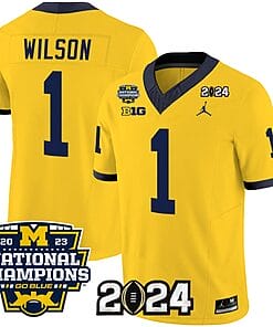 - National Champions and 2024 Patch For those who want to commemorate the Wolverines’ achievements, the Roman Wilson Jersey is available with the National Champions and 2024 Patch. This special addition allows you to proudly display the team’s success and celebrate their victory in style. It’s not just a jersey; it’s a symbol of Wolverines pride.