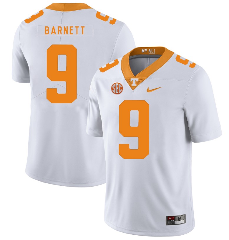 Celebrate your football fandom with this ncaa football jersey ! This Tennessee Volunteers Dereck Barnett Jersey #9 Football NCAA Jerseys White is available in various size men, women and youth and features a combination of stitched-embroidery. You’ll look just like your favorite ncaa football players when you rock this ncaa football jersey!
