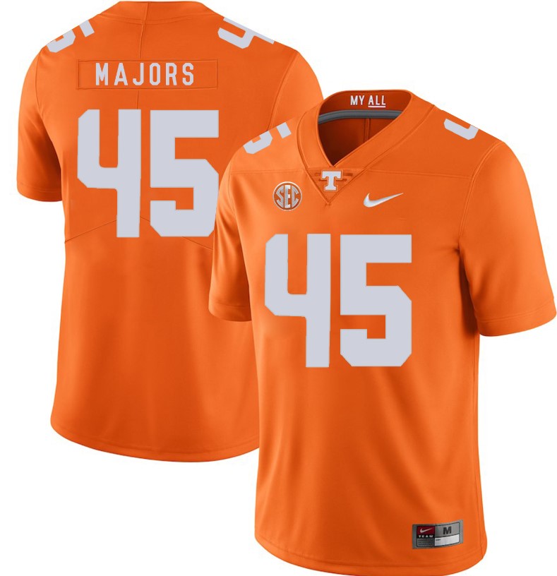 Celebrate your football fandom with this ncaa football jersey ! This Tennessee Volunteers Johnny Majors Jersey #45 Football NCAA Jerseys Dark Orange is available in various size men, women and youth and features a combination of stitched-embroidery. You’ll look just like your favorite ncaa football players when you rock this ncaa football jersey!