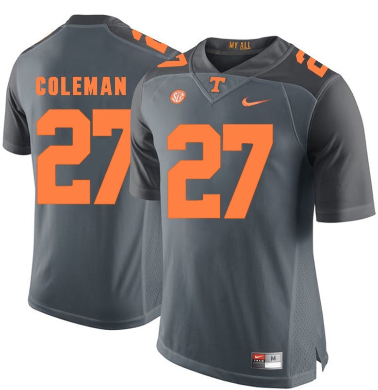 Celebrate your football fandom with this ncaa football jersey ! This Tennessee Volunteers Justin Coleman Jersey #27 Football NCAA Jerseys Gray Orange is available in various size men, women and youth and features a combination of stitched-embroidery. You’ll look just like your favorite ncaa football players when you rock this ncaa football jersey!