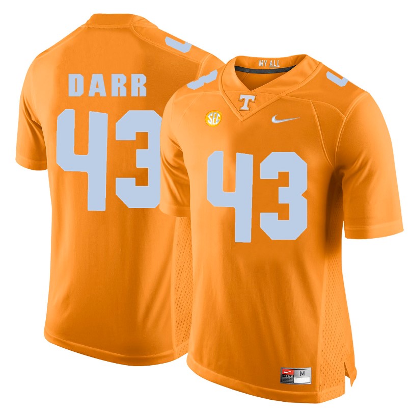 Celebrate your football fandom with this ncaa football jersey ! This Tennessee Volunteers Matt Darr Jersey #43 Football NCAA Jerseys Orange is available in various size men, women and youth and features a combination of stitched-embroidery. You’ll look just like your favorite ncaa football players when you rock this ncaa football jersey!