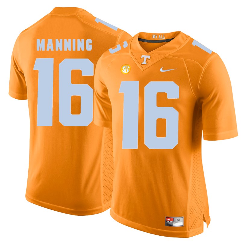 Celebrate your football fandom with this ncaa football jersey ! This Tennessee Volunteers Peyton Manning Jersey #16 Football NCAA Jerseys Orange is available in various size men, women and youth and features a combination of stitched-embroidery. You’ll look just like your favorite ncaa football players when you rock this ncaa football jersey!