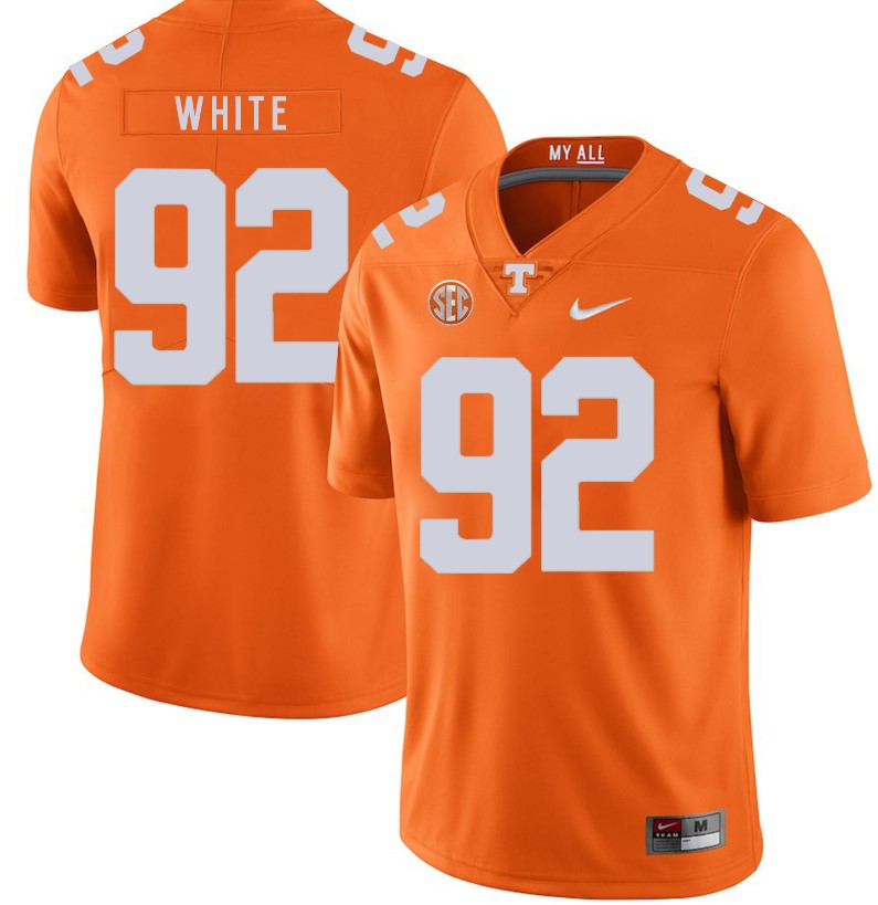 Celebrate your football fandom with this ncaa football jersey ! This Tennessee Volunteers Reggie White Jersey #92 Football NCAA Jerseys Orange is available in various size men, women and youth and features a combination of stitched-embroidery. You’ll look just like your favorite ncaa football players when you rock this ncaa football jersey!