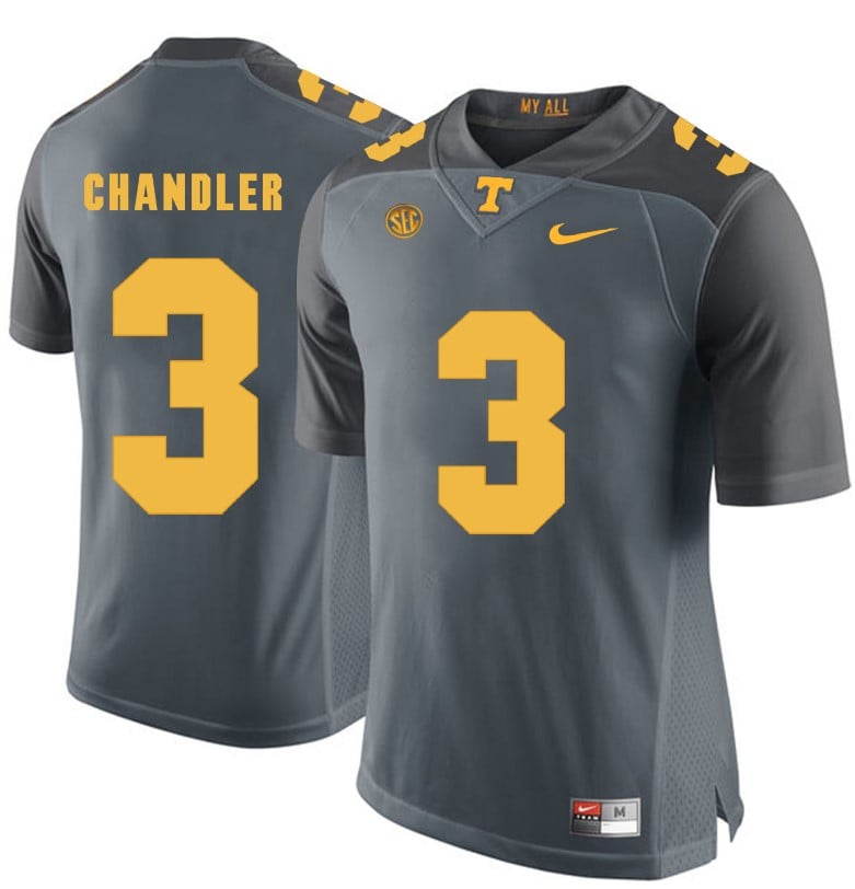Celebrate your football fandom with this ncaa football jersey ! This Tennessee Volunteers Ty Chandler Jersey #3 Football NCAA Jerseys Gray is available in various size men, women and youth and features a combination of stitched-embroidery. You’ll look just like your favorite ncaa football players when you rock this ncaa football jersey!