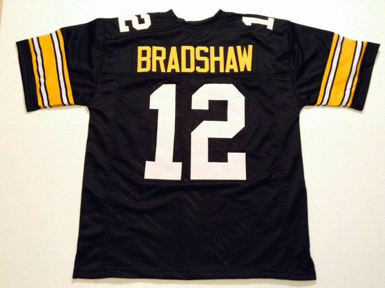 Celebrate your football fandom with this Football jersey ! This Terry Bradshaw UNSIGNED CUSTOM Made Black Jersey is in various size men and features a combination of stitched-embroidery. You’ll look just like your favorite football players when you rock this football jersey!