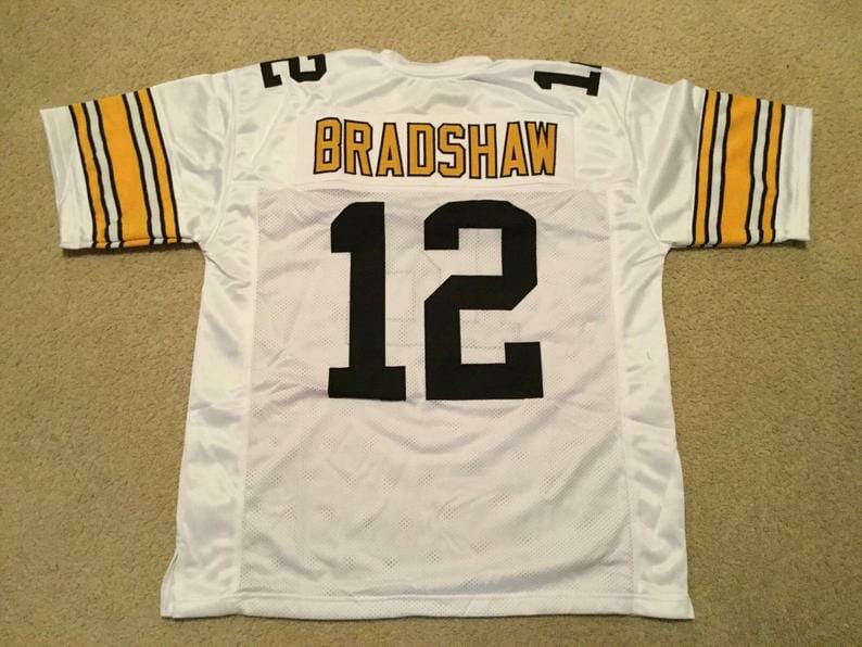 Celebrate your football fandom with this Football jersey ! This Terry Bradshaw UNSIGNED CUSTOM Made White Jersey is in various size men and features a combination of stitched-embroidery. You’ll look just like your favorite football players when you rock this football jersey!