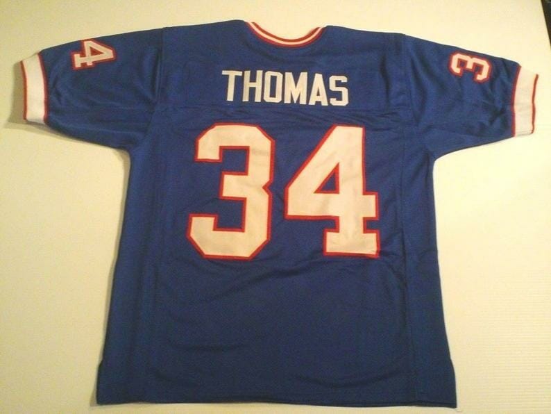 Celebrate your football fandom with this Football jersey ! This Thurman Thomas UNSIGNED CUSTOM Made Blue Jersey is in various size men and features a combination of stitched-embroidery. You’ll look just like your favorite football players when you rock this football jersey!