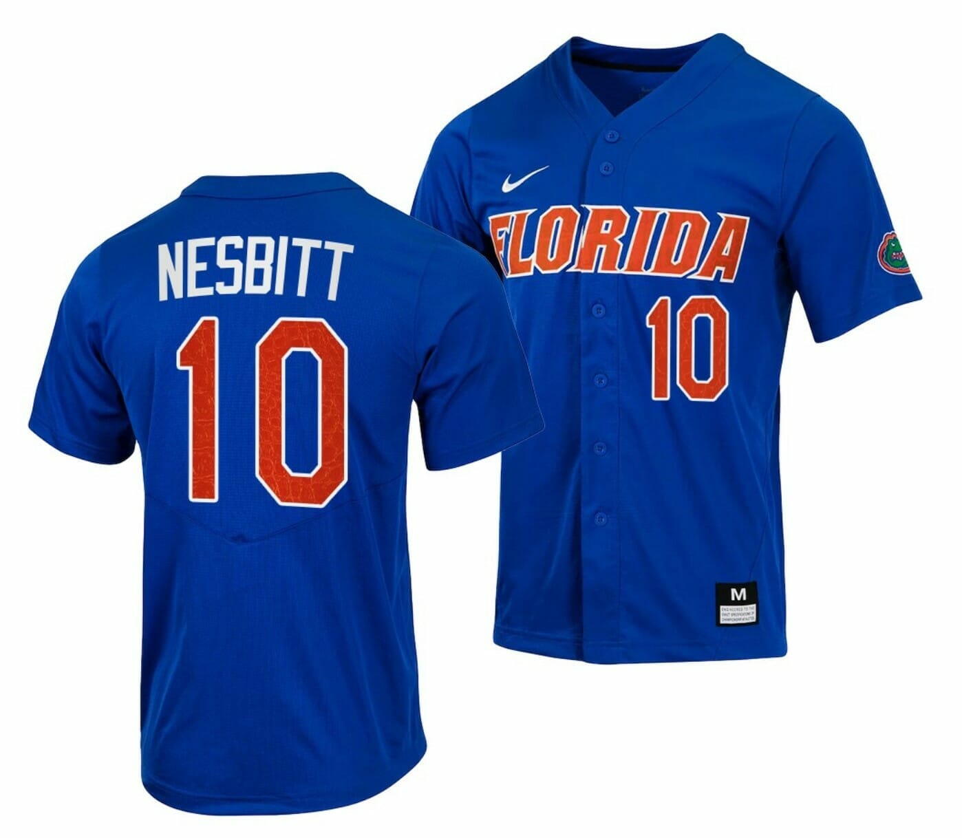 Get Your Game On with the Tyler Nesbitt Jersey Florida Gators College Baseball Full-Button Royal #10Â