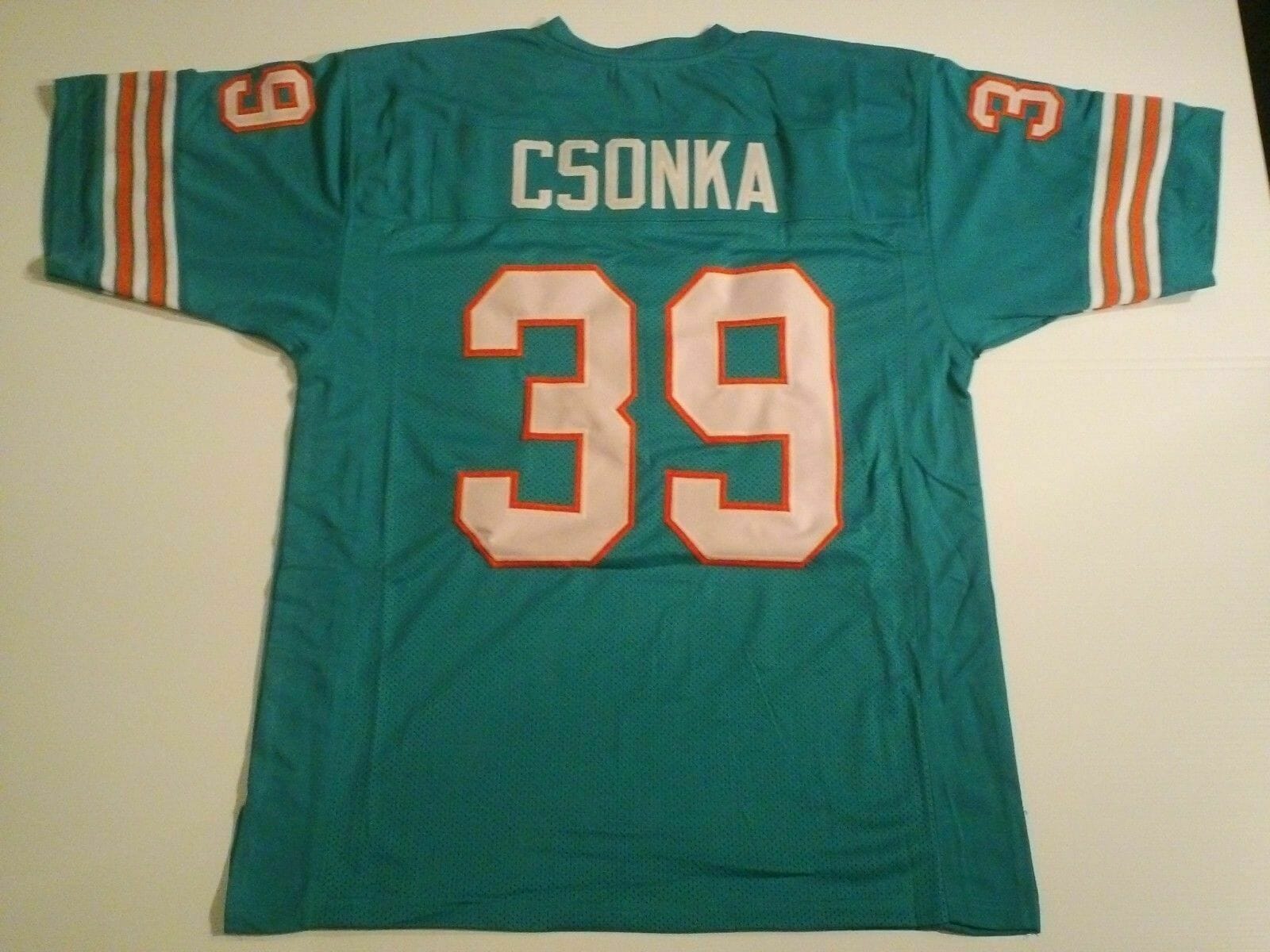 Celebrate your football fandom with this Football jersey ! This UNSIGNED CUSTOM Sewn Stitched Larry Csonka Teal Jersey is in various size men and features a combination of stitched-embroidery. You’ll look just like your favorite football players when you rock this football jersey!