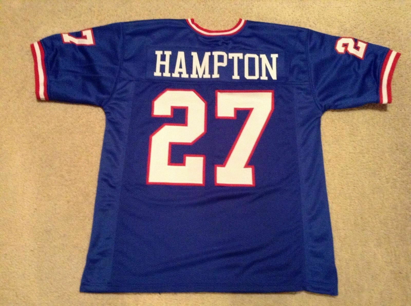 Celebrate your football fandom with this Football jersey ! This UNSIGNED CUSTOM Sewn Stitched Rodney Hampton Blue Jersey is in various size men and features a combination of stitched-embroidery. You’ll look just like your favorite football players when you rock this football jersey!