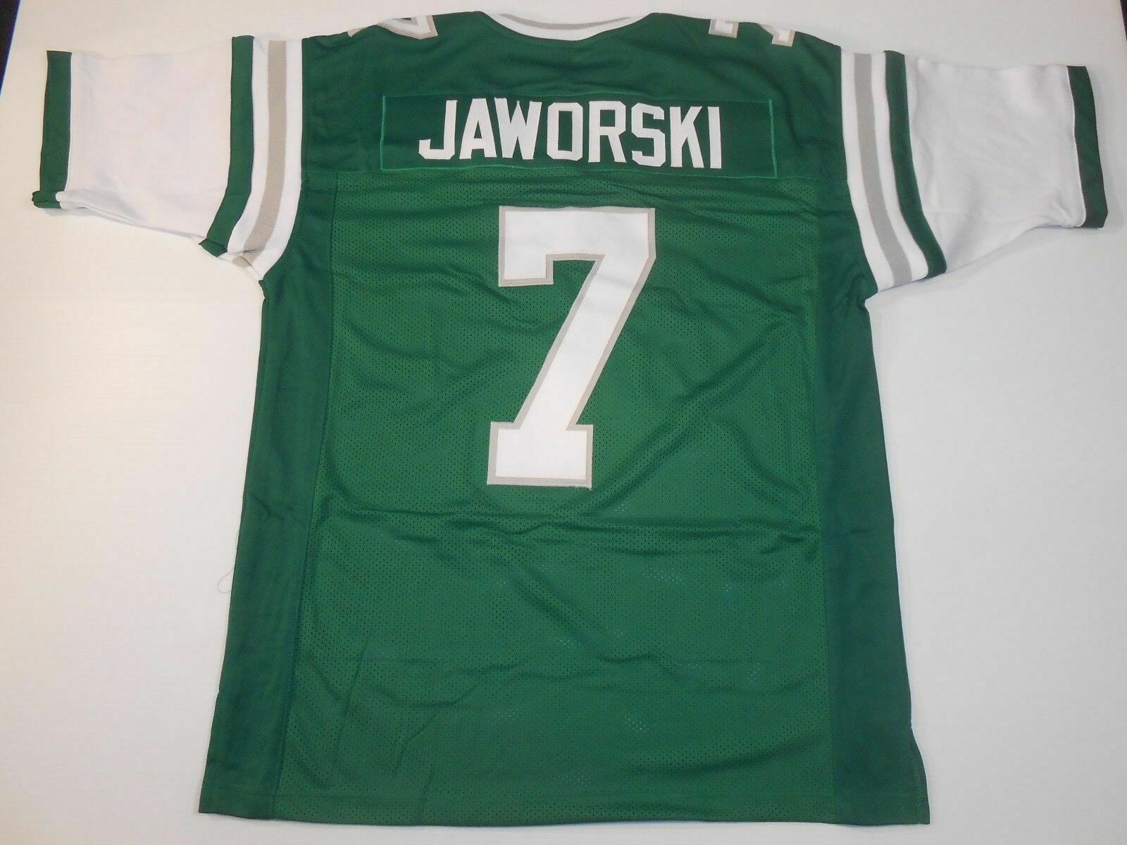 Celebrate your football fandom with this Football jersey ! This UNSIGNED CUSTOM Sewn Stitched Ron Jaworski Green Jersey is in various size men and features a combination of stitched-embroidery. You’ll look just like your favorite football players when you rock this football jersey!
