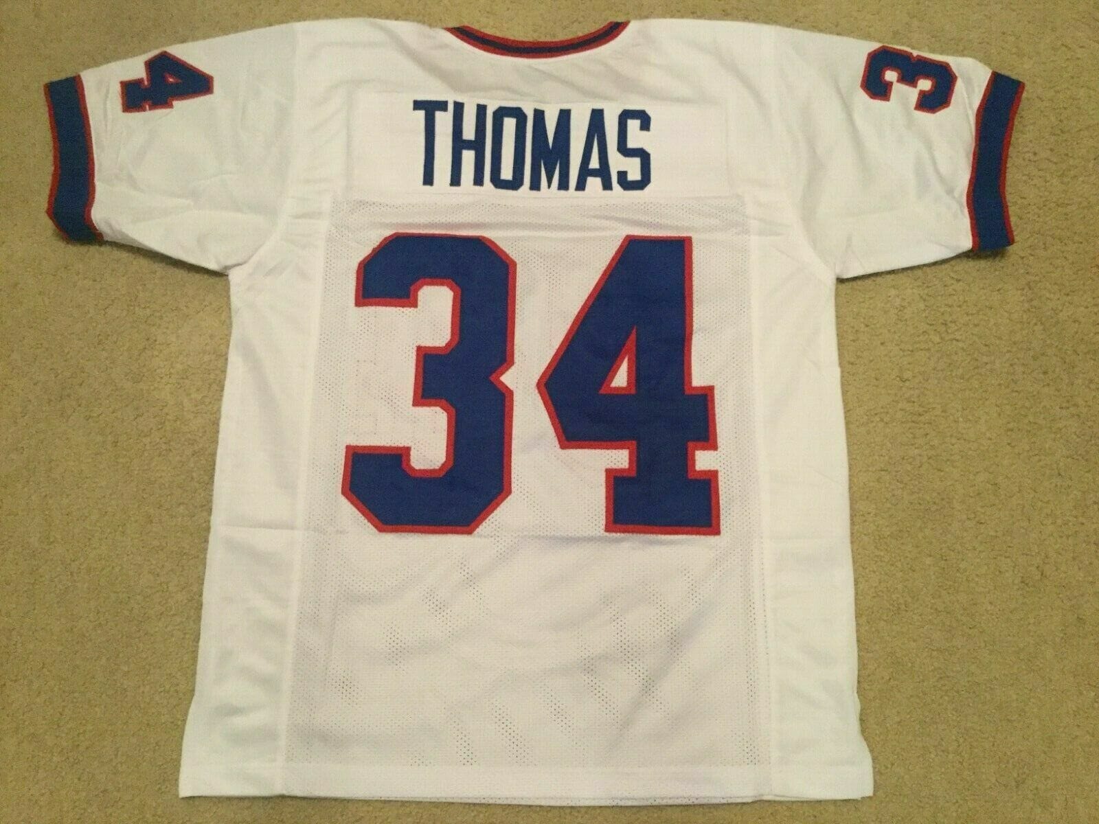 Celebrate your football fandom with this Football jersey ! This UNSIGNED CUSTOM Sewn Stitched Thurman Thomas White Jersey is in various size men and features a combination of stitched-embroidery. You’ll look just like your favorite football players when you rock this football jersey!