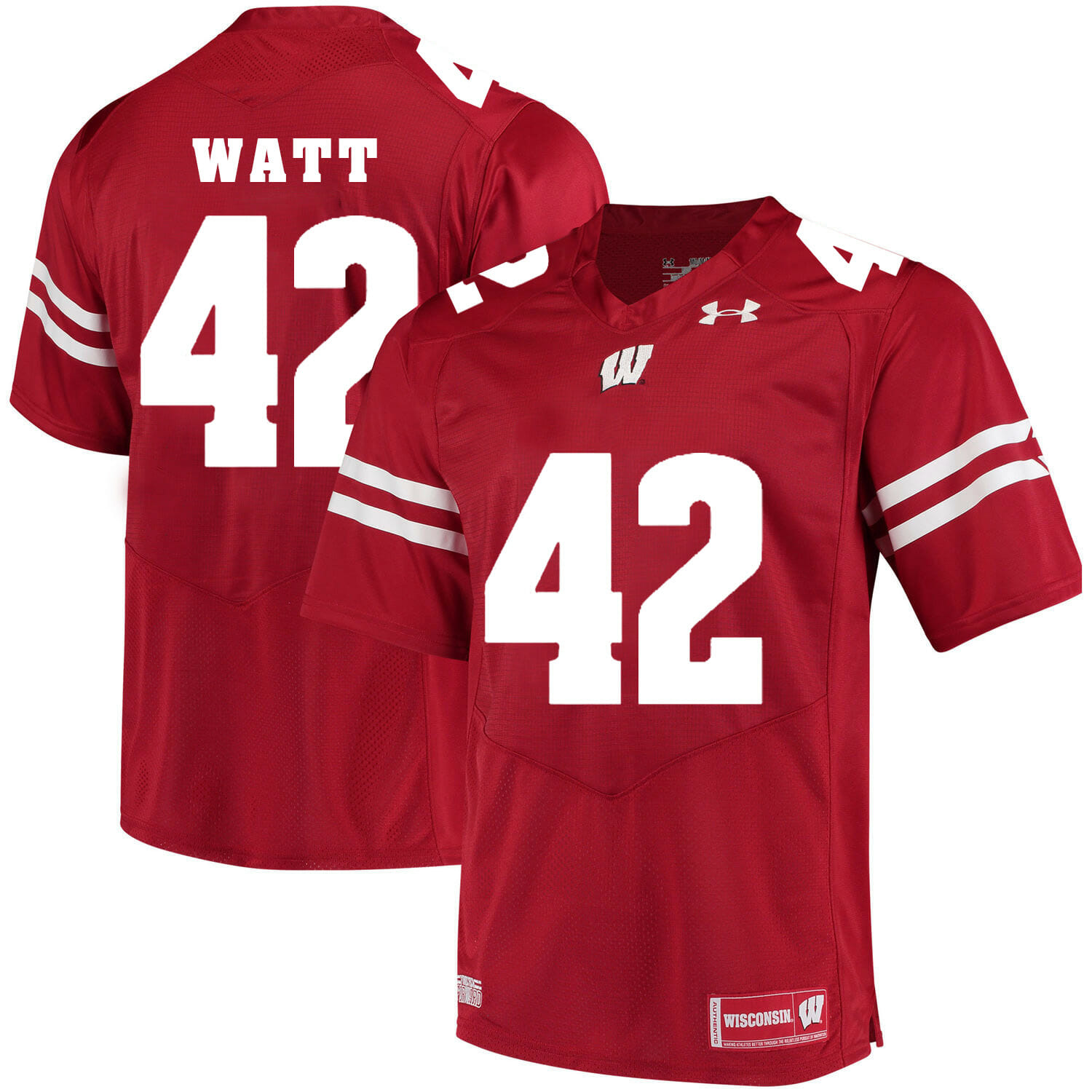 Celebrate your football fandom with this ncaa football jersey ! This Wisconsin Badgers #42 TJ Watt College Football Jersey White Red is available in various size men, women and youth and features a combination of stitched-embroidery. You’ll look just like your favorite ncaa football players when you rock this ncaa football jersey!