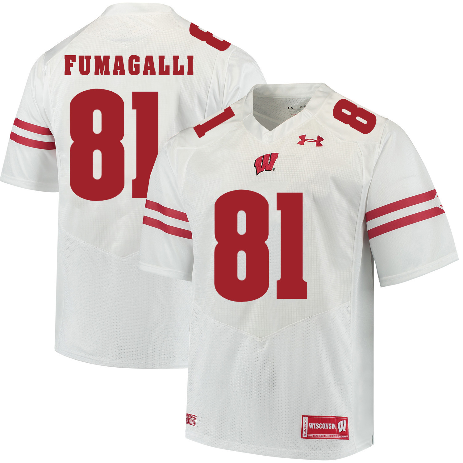 Celebrate your football fandom with this ncaa football jersey ! This Wisconsin Badgers #81 Troy Fumagalli College Football Jersey White is available in various size men, women and youth and features a combination of stitched-embroidery. You’ll look just like your favorite ncaa football players when you rock this ncaa football jersey!